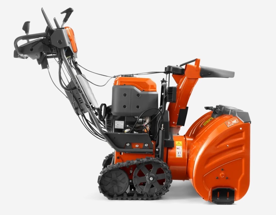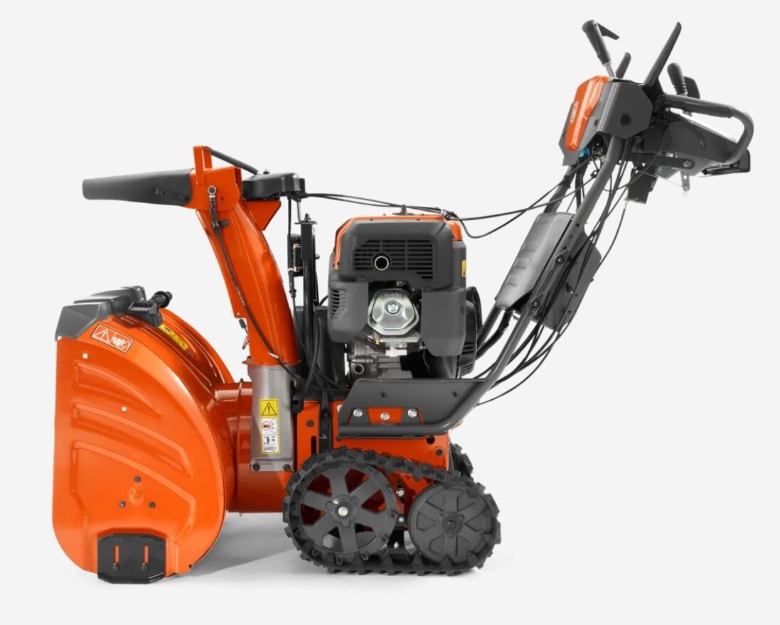 Dominate the toughest winter terrain with the Husqvarna ST 424T. Ultra-rugged tracks stand up to any terrain, day in and day out. This commercial-grade snow thrower features a heavy-duty auger and cast iron impeller for maximum performance. With instant key starting and power steering, this machine is easy to use and the heated handle grips will keep you comfortable all winter long.